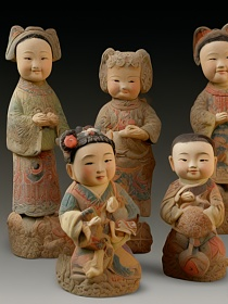 六尊泥塑人偶