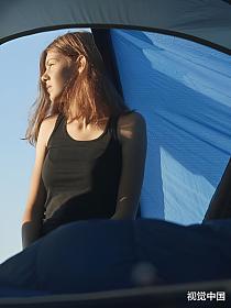 天台上的露营女孩